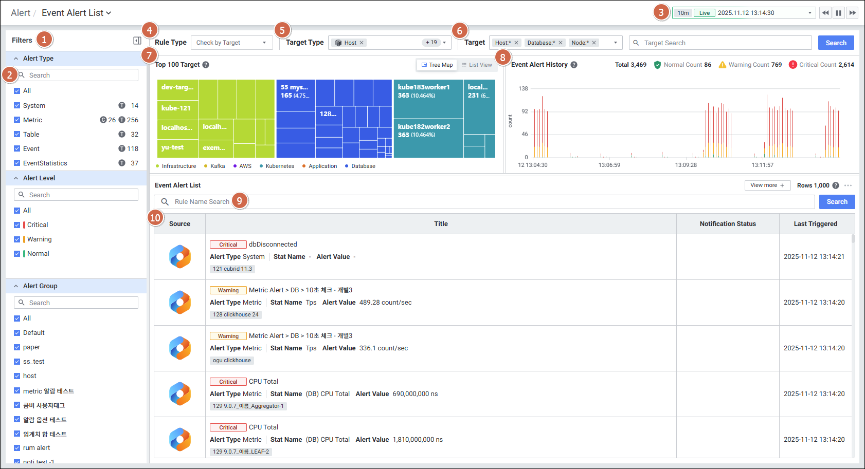 • Sort by Stat: alertRuleId, alertRuleName, alertRuleType, ruleCriteria, alertLevel 등