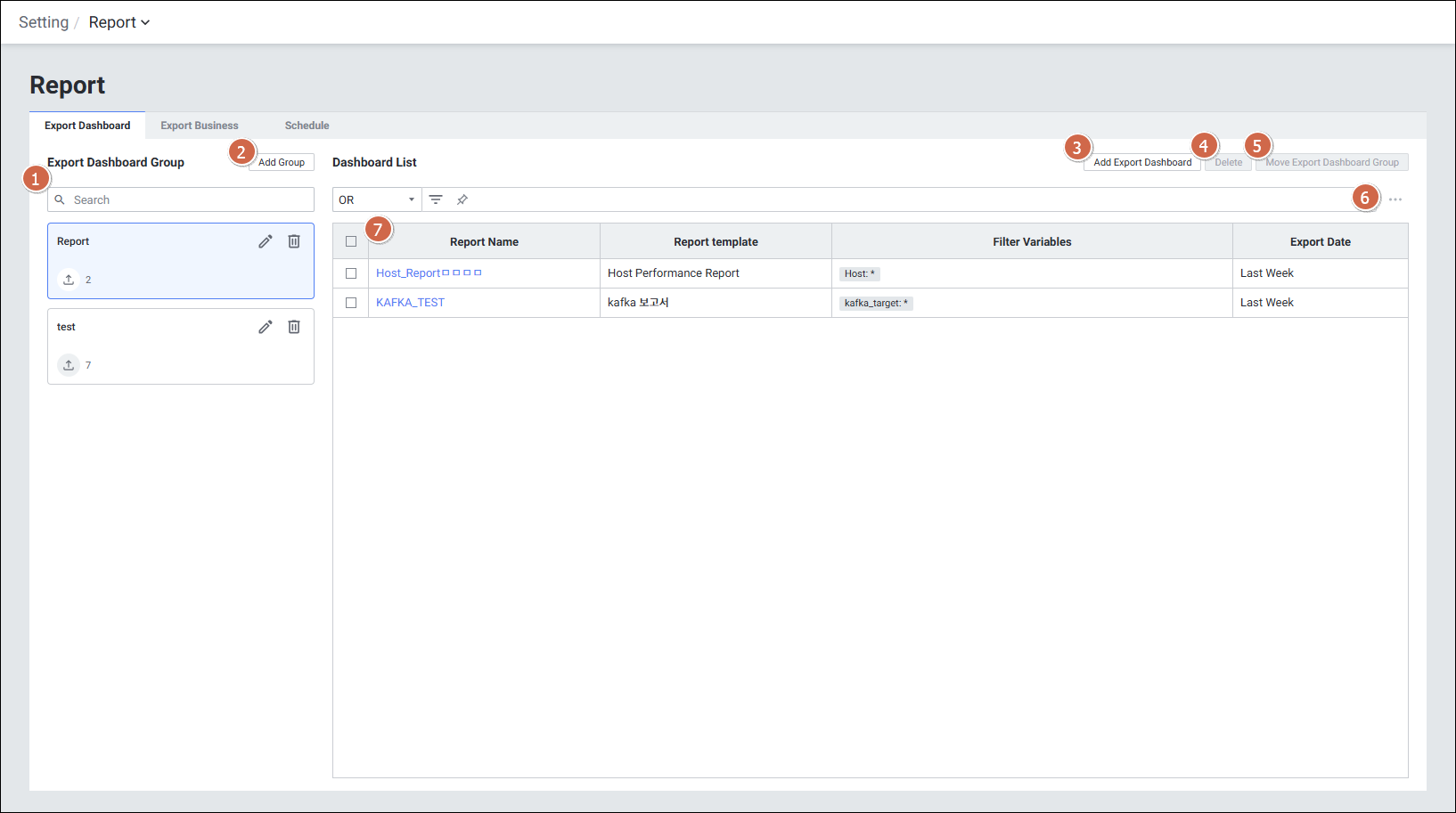 4-2. Setting > Monitoring > Report > Export Dashboard (스케줄 리포트 설정)