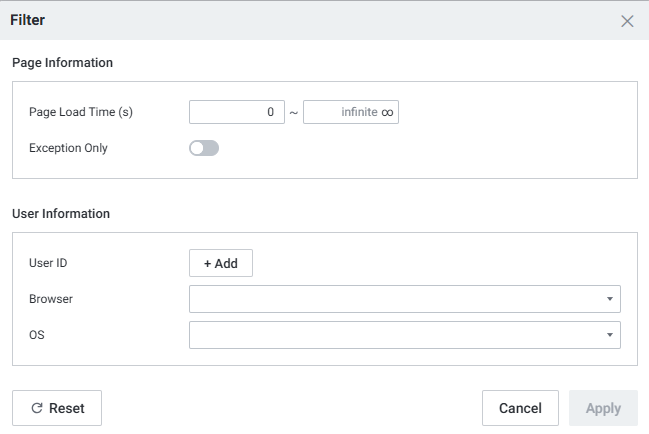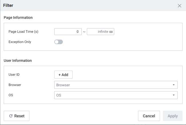 Filter예외 항목만 필터링, 사용자 ID/브라우저/OS로 필터링 가능