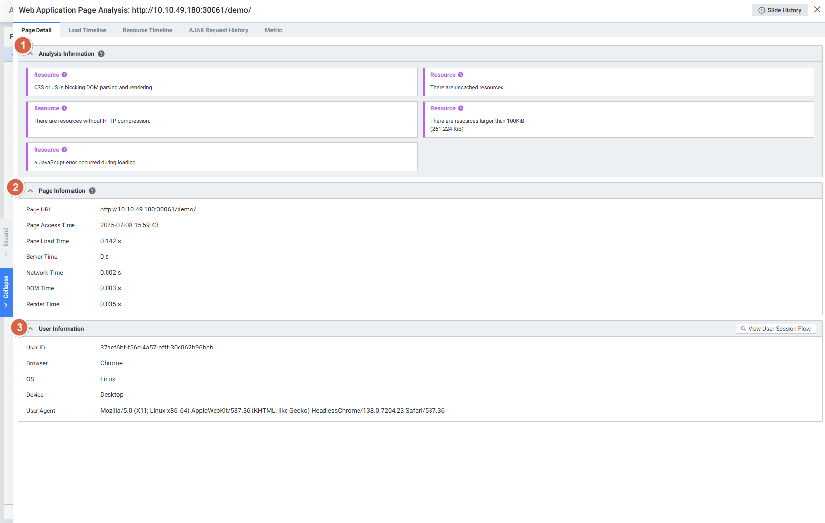 참고 문서: Web Application Page Analysis Detail