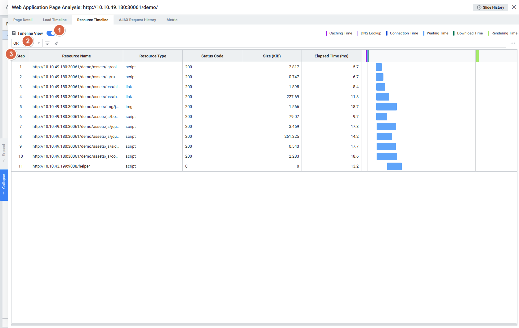 Load Timeline Detail로드 타임라인의 항목 별 상세 정보 표시